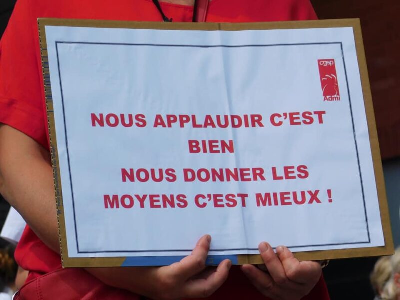 Ce mercredi 27 mai, la CGSP Admi a organisé plusieurs actions symboliques dans les hôpitaux publics de Wallonie pour réclamer un refinancement des soins de santé et une revalorisation des métiers. Des actions à Malmédy, Liège, Huy, Seraing, Namur, Charleroi, Mons, Chimay… entre colère et recueillement. Nous avons entendu les récentes paroles de la Première…